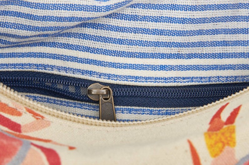 Preciosa bossa mà "cranc" fabricat en cotó, amb tiradors de cuir.