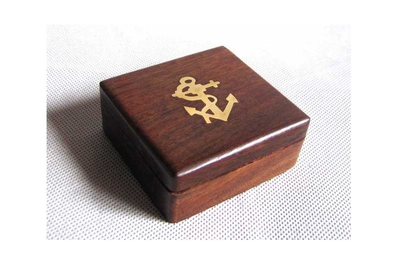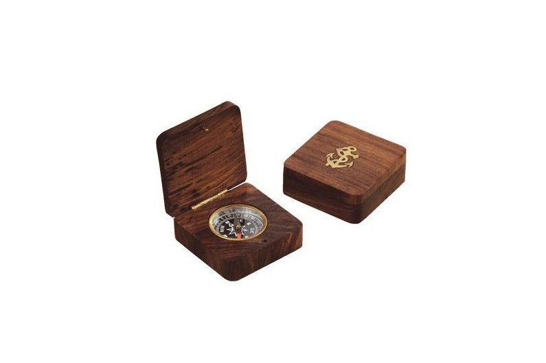 Brúixola encastada en caixa de fusta d'alta qualitat amb mesures 6,5 x 6,5 x 2,5 cm. Ideal com a recordatori de convencions o visites, o com a detall d'empresa. Història de la brúixola
