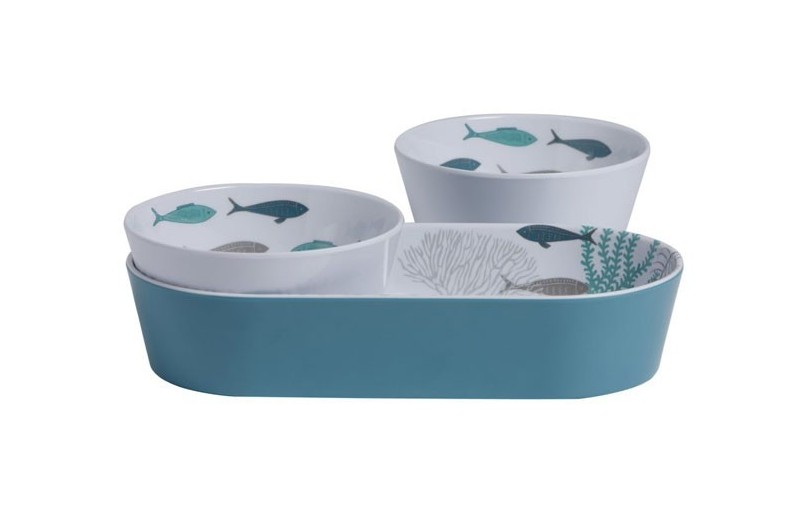 Set de snacks compost de 2 bols i safata, amb fons marí.