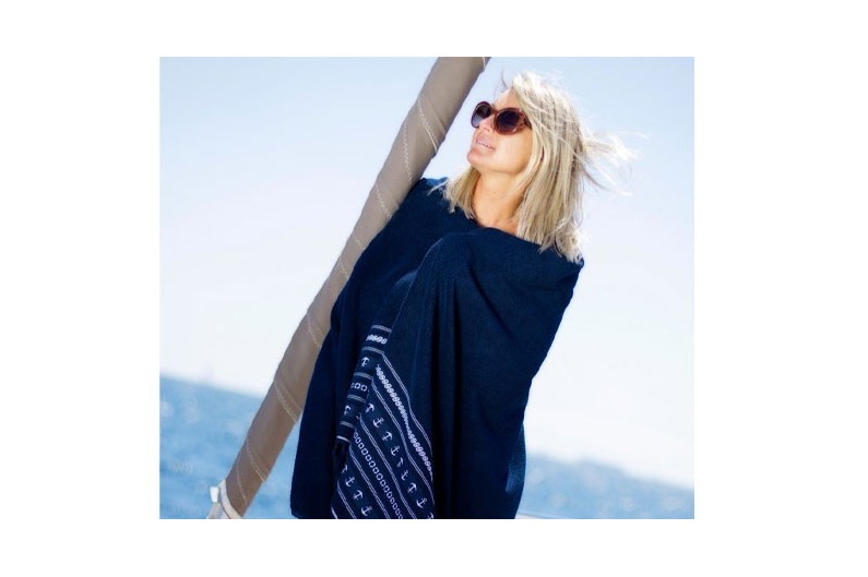 Tovallola de platja molt agradable al tacte, de color blau. Col·lecció: SANTORINI Material: 100% Cotó