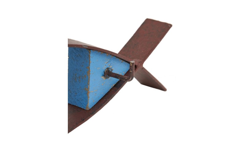 Penjador de claus, fabricat a mà amb fusta i acer, en forma de un peix.