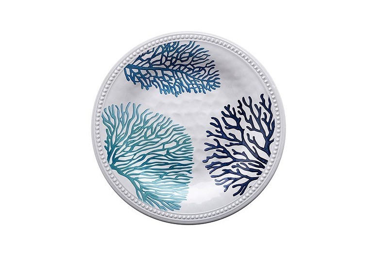 Set de 6 unitats de plat pla, de preciós disseny, de fons blanc i alges.