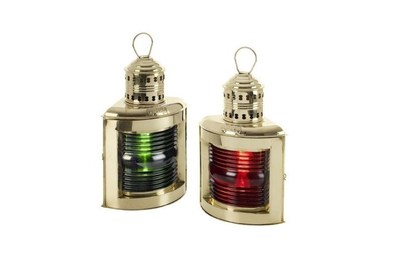 Llums de navegació elèctriques, estribord (verd) i babord (vermella), realitzades en llautó envellit i equipades de la seva lent de Fresnel. Abans que l'electricitat aparegués en els vaixells, els llums eren de petroli. Tenien llavors una petita xemeneia per a l'evacuació del fum.