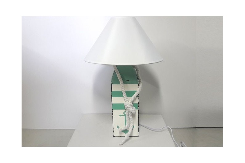 Llum amb peu de balisa decorativa fabricada de fusta de pi. Fabricada i pintada a mà.