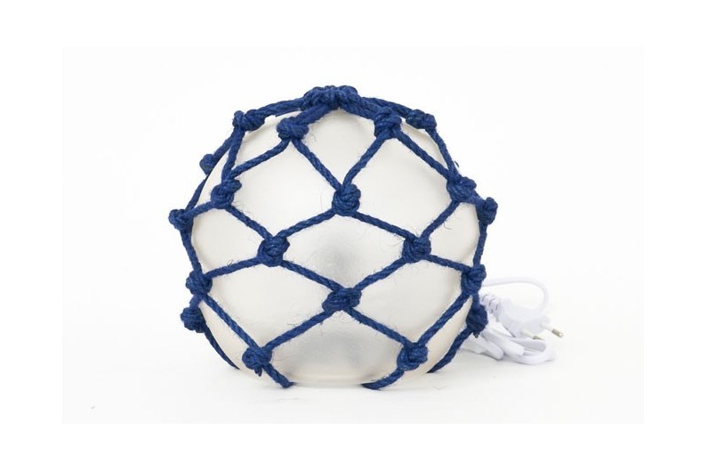 Làmpada de boia de vidre de sobretaula amb corda de cànem de color. Funciona amb 220v.