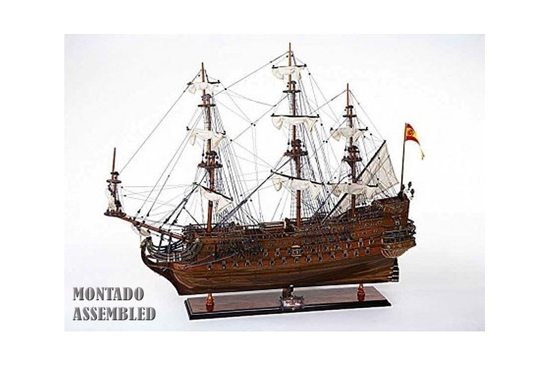 un disseny elegant. Era la nau principal de l'Armada Espanyola que va lluitar contra els britànics i els francesos. En 1744 va ser danyada durant un enfrontament amb els navilis britànics i remolcat a Cartagena. Maqueta decorativa amb acabats d'una gran qualitat realitzada en fusta, envernissada i completament muntada de forma artesanal.Embalaje en caixa individual.Detalls del producte