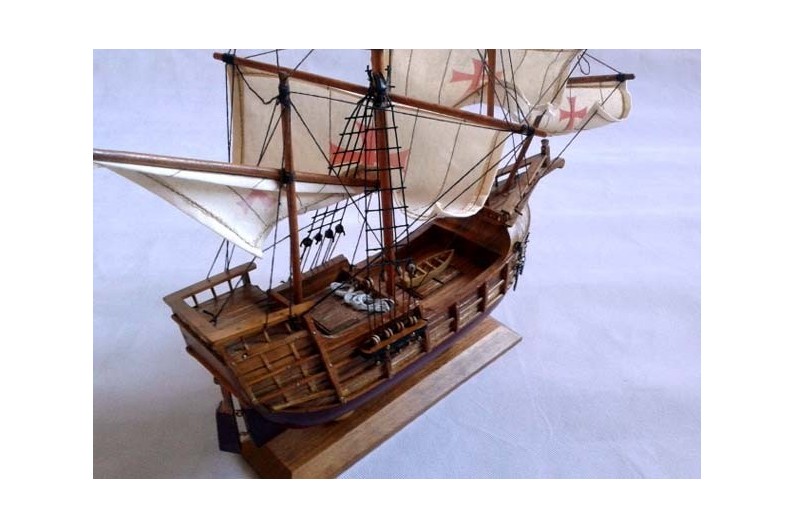 Reproducció naval artesana realitzada en fusta, pintada i completament muntada. Mesuri bé la prestatgeria o lloc on té pensat posar aquesta preciosa reproducció, ja que aquestes maquetes són més grans del que semblen.