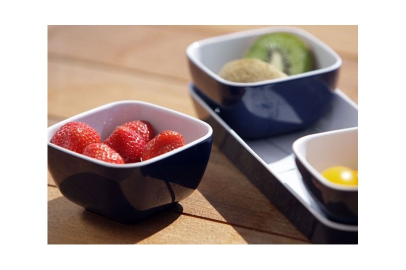 Set de 3 unitats de bols per a snacks més safata, de preciós disseny, de color blanc i blau.