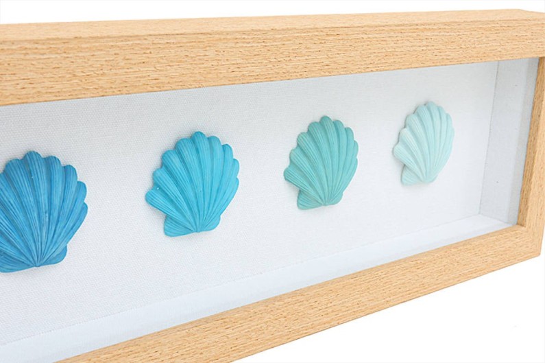 Quadre marí decoratiu de fusta. En el quadre destaquen unes boniques petxines.