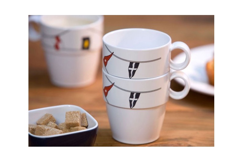 Set de 6 unitats de tasses, de preciós disseny, de fons blanc i banderes.
