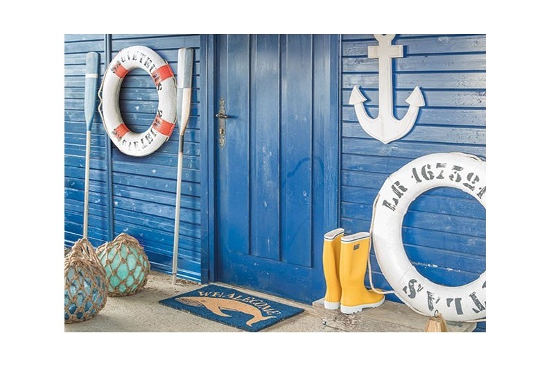 Rèplica exacta d'un salvavides, ideal per donar un toc marí a la decoració. Realitzat en porexpan al seu interior i recobert d'una lona de cotó. La corda de cotó lligada al seu voltant s'utilitza per poder agafar-se.