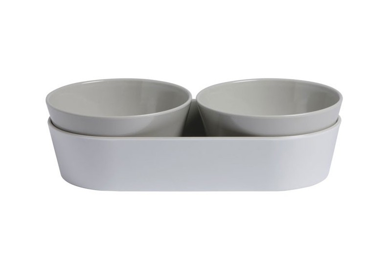 Set de 2 unitats de bols per a snacks més safata, de preciós disseny, color blanc i gris.