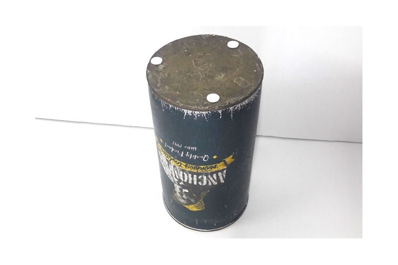 Llauna d'anxoves fabricada en ciment. Ideal per aperitius.