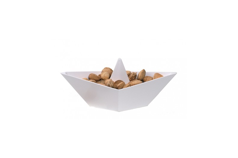 Reproducció en fusta i artesanal d'un preciós i original vaixell de paper inspirat en la papiroflèxia. Fabricat en fusta i pintat de blanc.