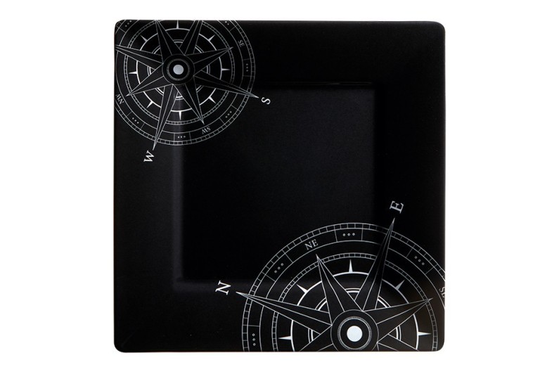 Set de 6 unitats de plat pla quadrat, de preciós disseny, de color blanc i negre.