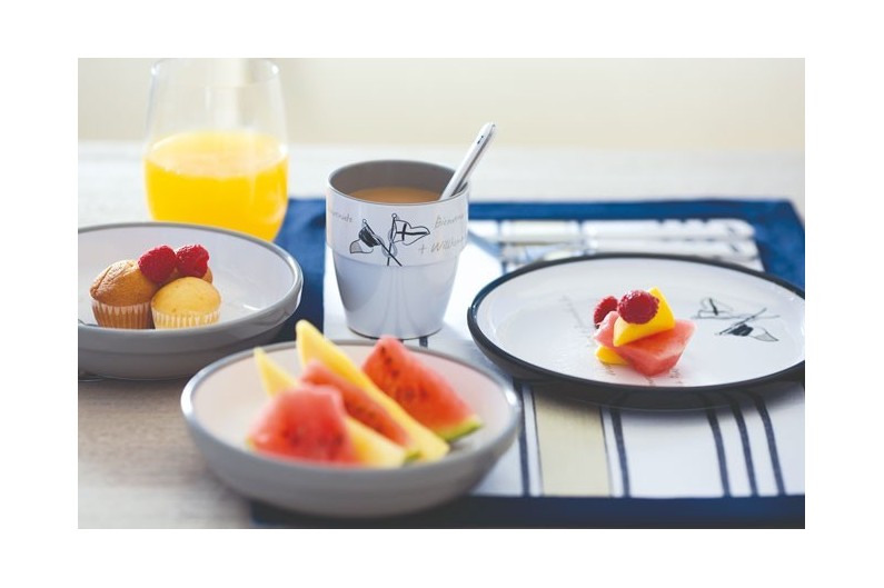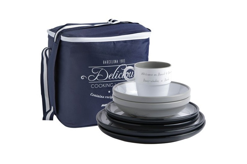 Set de 16 peces, que inclou: 4 plats plans, 4 plats fondos, 4 plats postres, 4 tasses mug i bossa de transport.