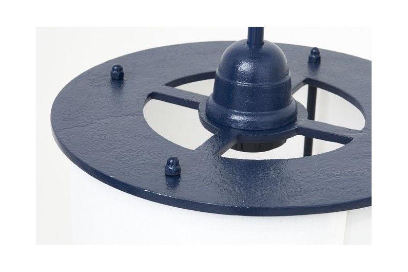 Blaue Seedekor-Lampe in veraltetem Messing mit durchleuchtendem Lampenschirm. Sie funktioniert mit 220V. Glühbirne E27.