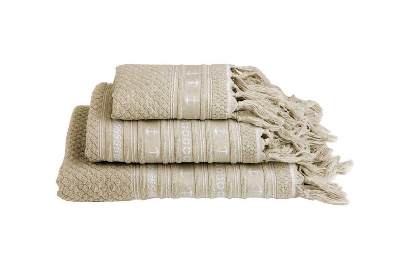 Set von 3 Handtuch, sehr angenehm, in beigefraben-Tönen.