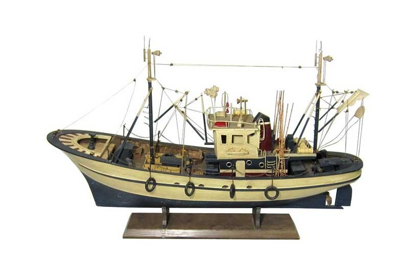 Schönes Fischerboot Seedekor-Modell, komplett montiert, von einem Ruderboot, ideal als Geschenk, das Wohnung und Büro dekoriert. Man sucht keine genaue Reproduktion, sondern den dekorativen Wert. Hochwertige Konstruktion mit edlen Materialien, genau bis auf die kleinsten Details.