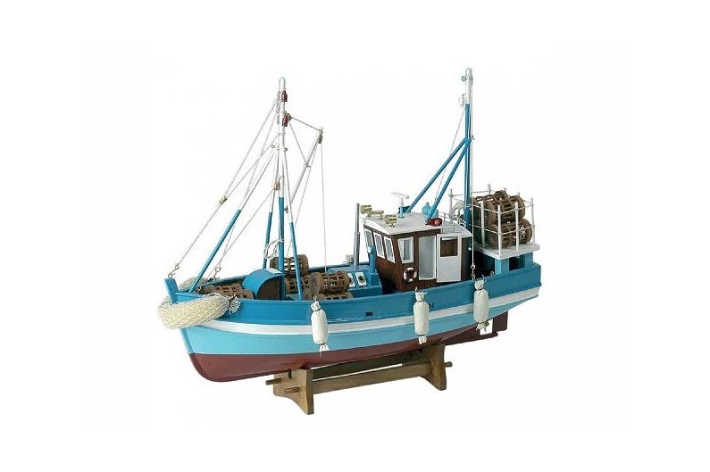 Fischerboot für den  Hummerfang. Rustikale und traditionelle Holz- Reproduktion handwerklich hergestellt und bemalt.