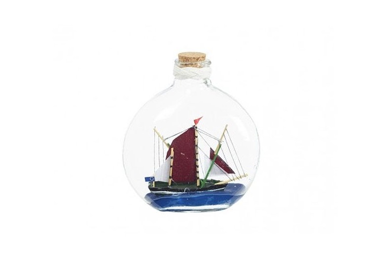 Sechs Boote in der Flasche, aus hochwertigem Holz geschnitzt, lackiert und mit Wachs versiegelt. Ideal als Erinnerung an Konventionen oder Besuche, oder als Geschenk für Kinder.  Normalerweise gibt es große Mengen auf Lager, es kann aber vorkommen, dass es von einem Produkt nicht möglich ist, mehr als 500 Einheiten zu liefern.