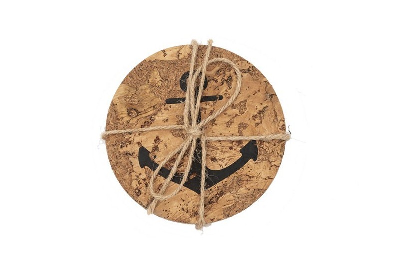 Set mit 6 Korkuntersetzern mit Anker.