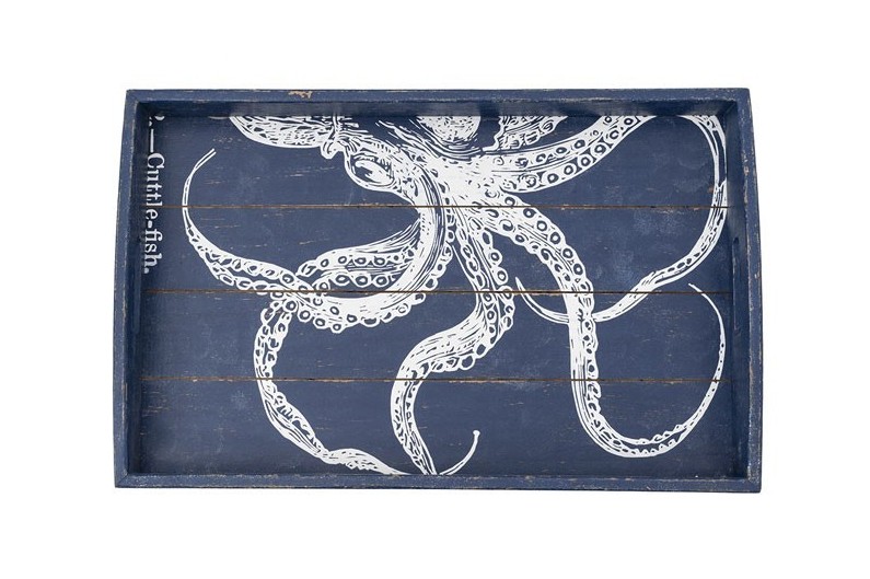 RechteckigTablett, mit einem Tintenfisch verziert, sehr leicht und einfach zu transportieren. Hergestellt aus Holz.