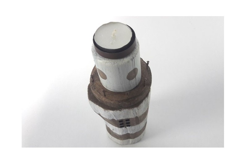 Kerzenhalter in Form eines Leuchtturms aus Holz.