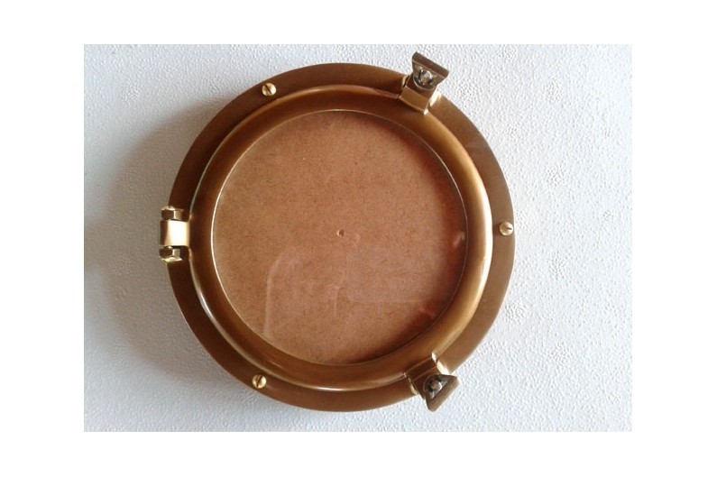 Bullauge als Fotorahmen aus veraltetem Messing.