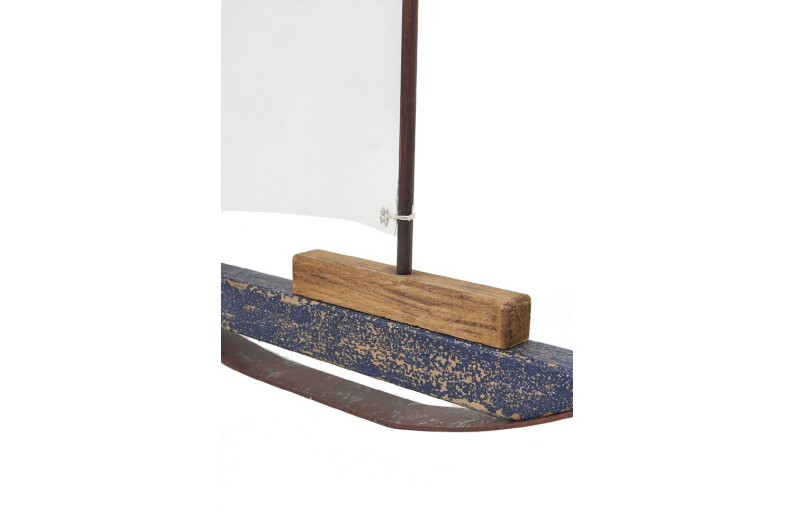 Dekoratives Tischsegelboot, handgefertigt aus Holz und Stahl, modernes Design. Ideal für informelle und moderne Dekorationen.