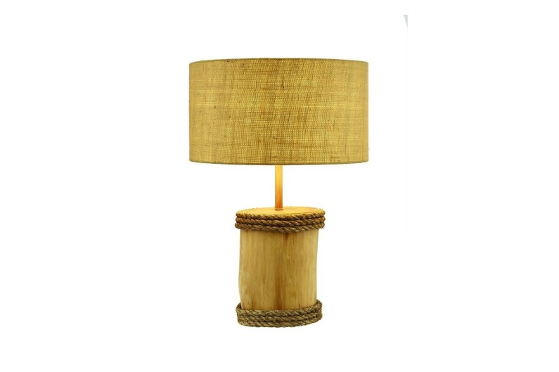 Lampe aus einem natürlichen Baumstamm. Diese schöne Seedekor-Lampe ist aus Holz, von Hand lackiert, und mit Hanfseil gemacht.