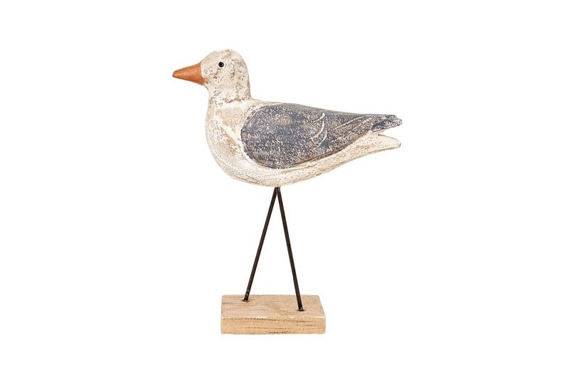 Elegante Vogelfigur zur Meeresdekoration, Seevogelnachbildung. Handgefertigt aus lackiertem Holz.