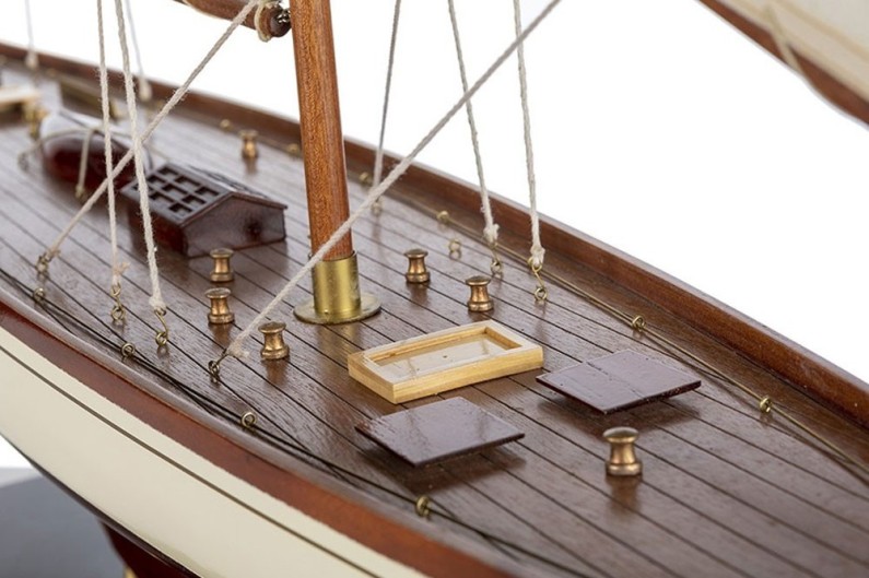 The Rainbow (1934), wurde nach den internationalen Standards der Klasse J gebaut und von Marine-Ingenieur William Starling Burgess entworfen. Dieses Boot wurde in Rhode Island (USA) entworfen und hergestellt, um den America 's Cup gegen die "Endeavour" verteidigen. Scale-Modell dekorative handgefertigte Holz gefertigt. Verpackung: Mast demontiert . Boot geliefert in Einzelboxen.