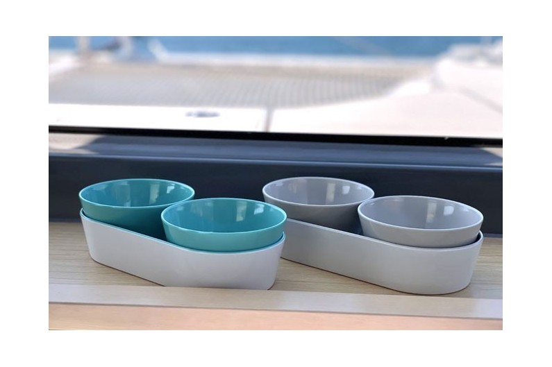 Set von 2 Stücke Bowls für Snacks mit platte, wunderschönes Design, in weiss und Grün Hintergrund.