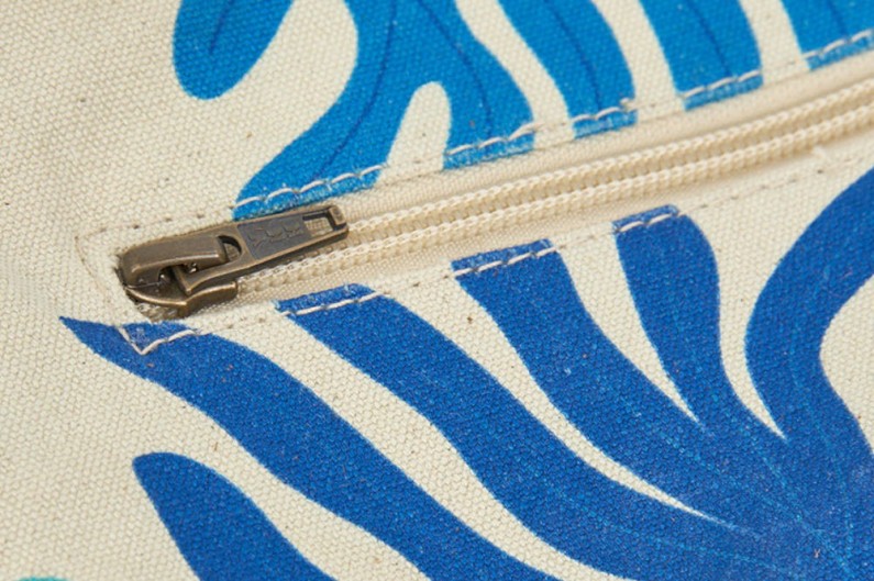 Schöne tasche aus Baumwolle mit Lederriemen.