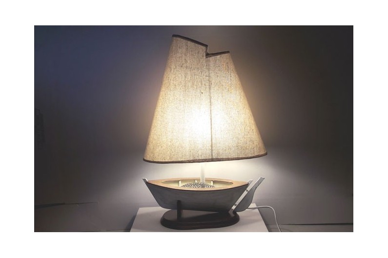 Bootlampe. Eigenartige nautische Lampe, aus einem Bootsrumpf hergestellt, aus dem eine Kerze ragt. Von Hand hergestellt und bemalt. Wird mit dem Bildschirm geliefert.