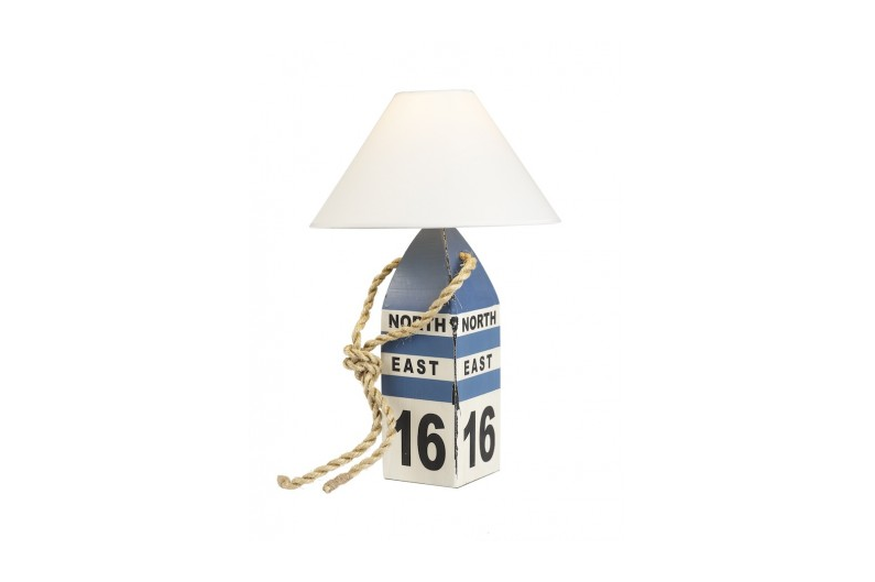 Bojen-lampe, inspiriert von schwimmenden maritimen Bakenbojen. Dekorative nautische Lampe aus Holz, handbemalt. Wird mit Bildschirm geliefert.