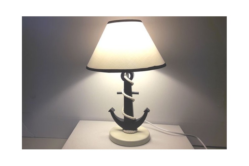 Originale Lampe mit Anker als Fussform. Der Marine-Ankerfuß besteht aus Kiefernholz. Das Seil ist aus Baumwolle.