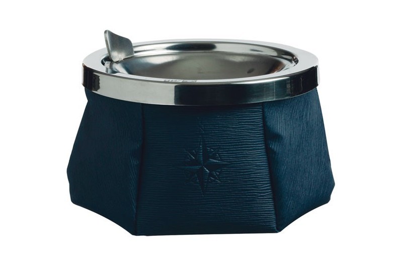 Dunkelblauer Aschenbecher fest gegen Wind und Schiffsbewegungen.