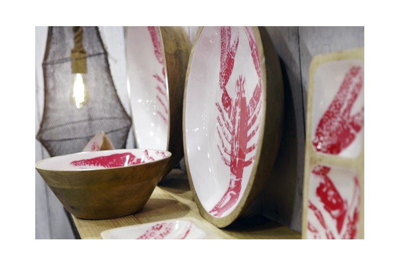 Bowl made of enameled wood with lobster printed.