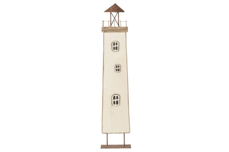 Nice lighthouse to decorate your home. In a naïf style, this original lighthouse offers you a marine atmosphere at home. Made of wood with a metal base.