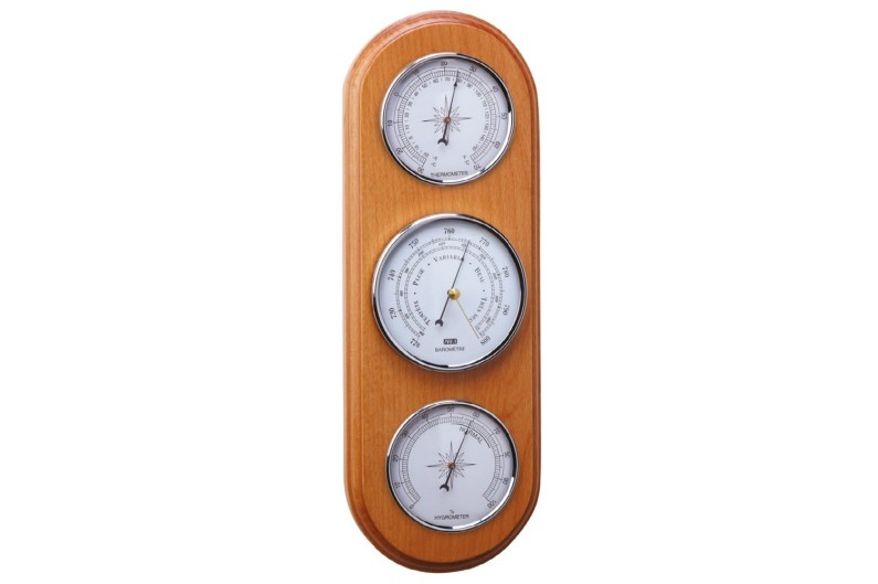 Weather station. It has Humidity, atmospheric pressure and temperature and can perform a basic weather forecast. They are mounted on a wooden frame.
