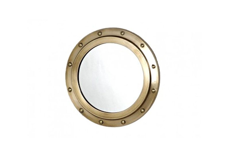 Porthole with mirror. Porthole in antique brass nautical decor.