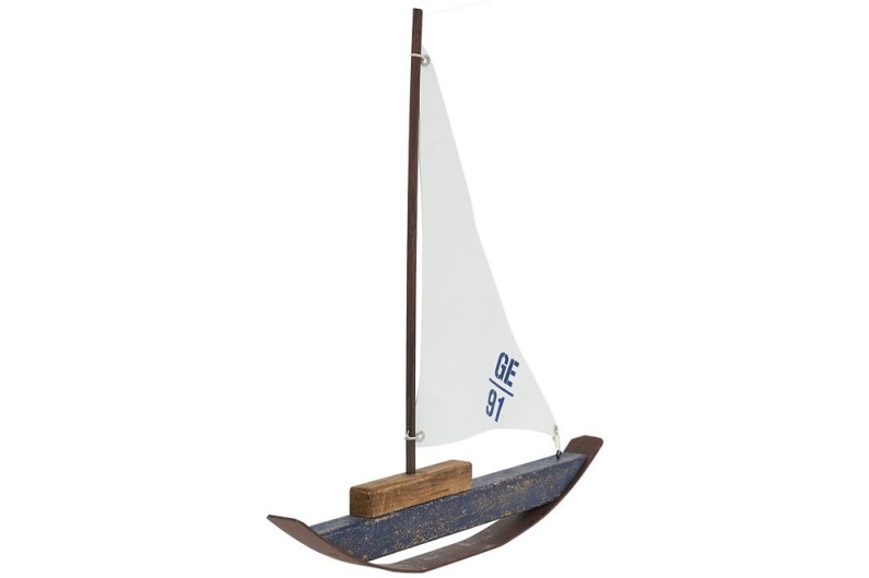 Decorative tabletop sailboat, handmade in wood and steel, modern design. Ideal for informal and modern decorations.