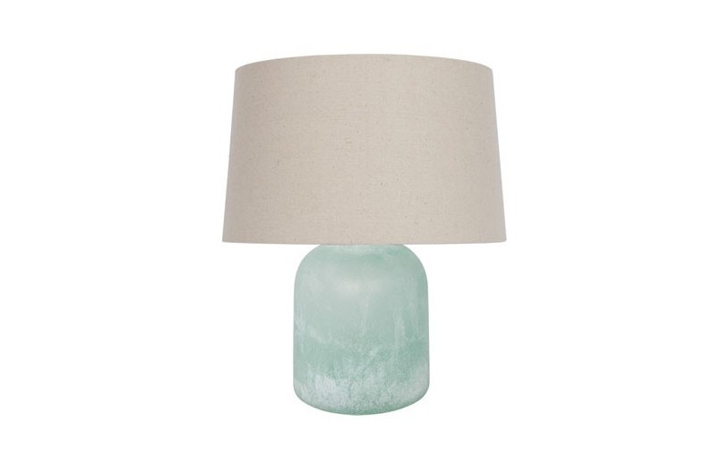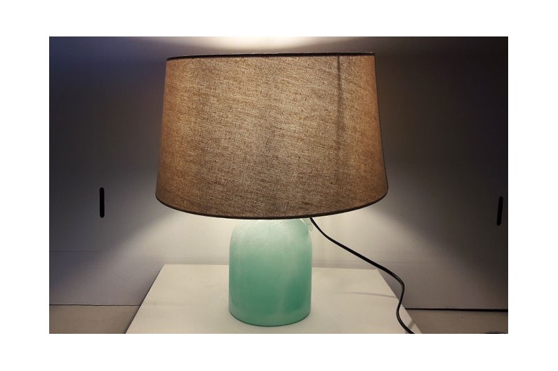 Decorative glass bottle lamp AQUA FROSTED white colour and translucent fabric lampshade.