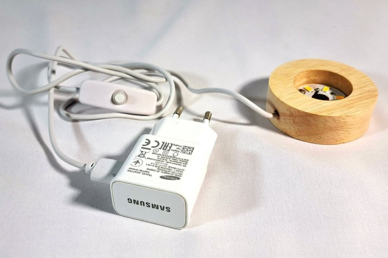 Led light that illuminates an astronomical transparent ball. It includes the glass ball, the led base and USB cable.