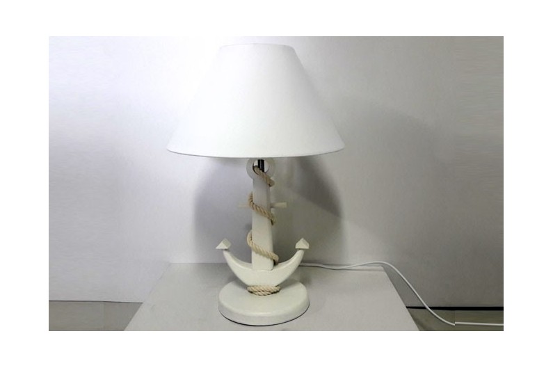 Original lamp with marine anchor style foot shape. Marine anchor foot is made of pine wood. The rope is cotton.