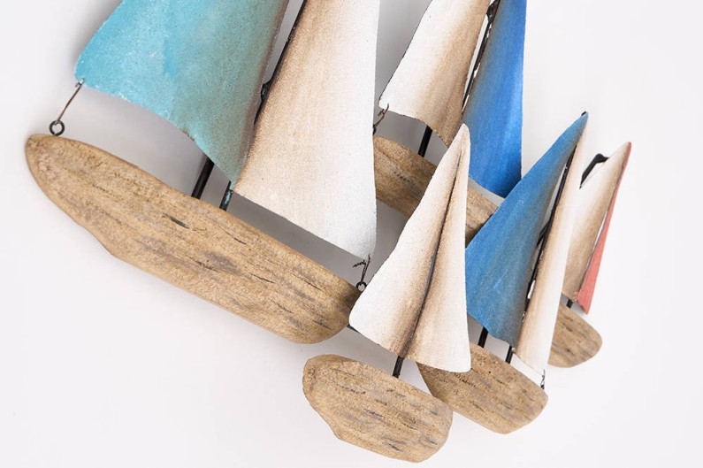 Wall decoration of sailboats shape, handmade with wood and steel.