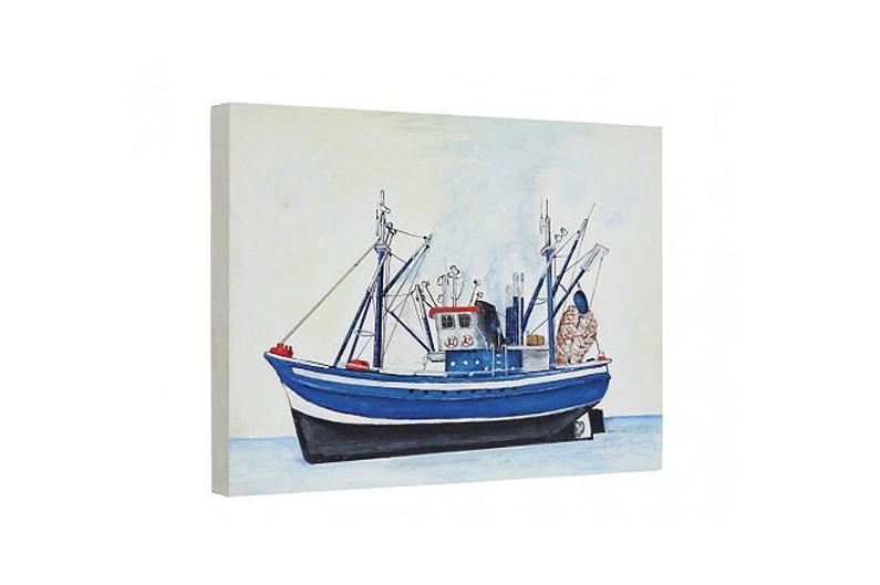 Copy of marine painting. Reproduction of a Fishing boat  painting printed on a cotton cloth and mounted on a wooden frame.
