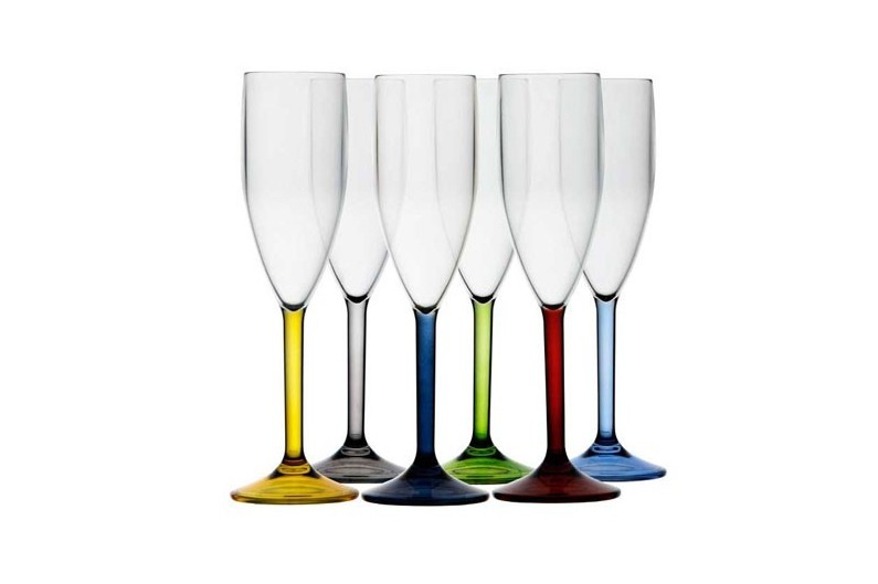 Set of 6 units glasses of champagne, a lovely design, with coulored bases. Collection: PARTY Materials: MS BPA Free